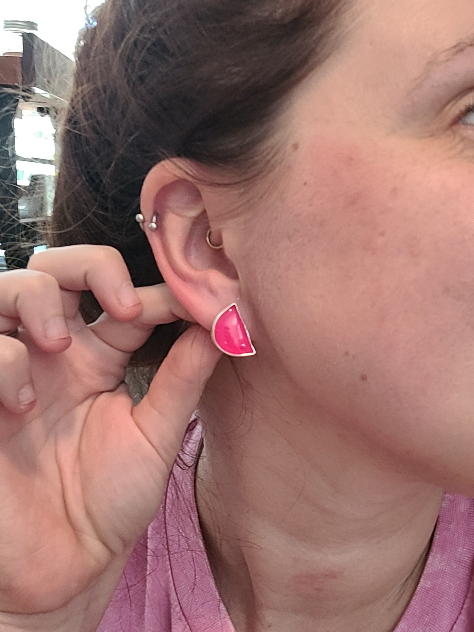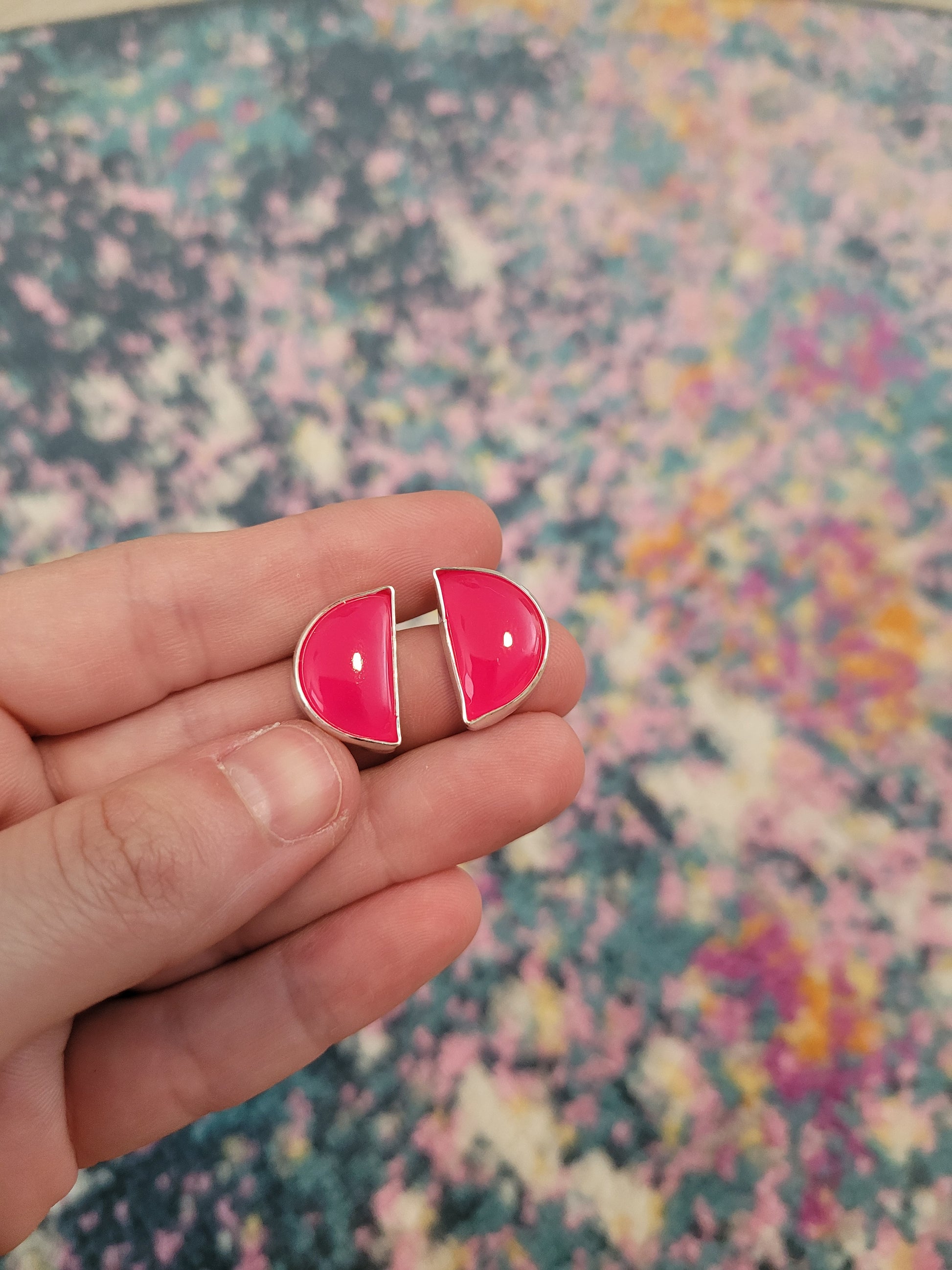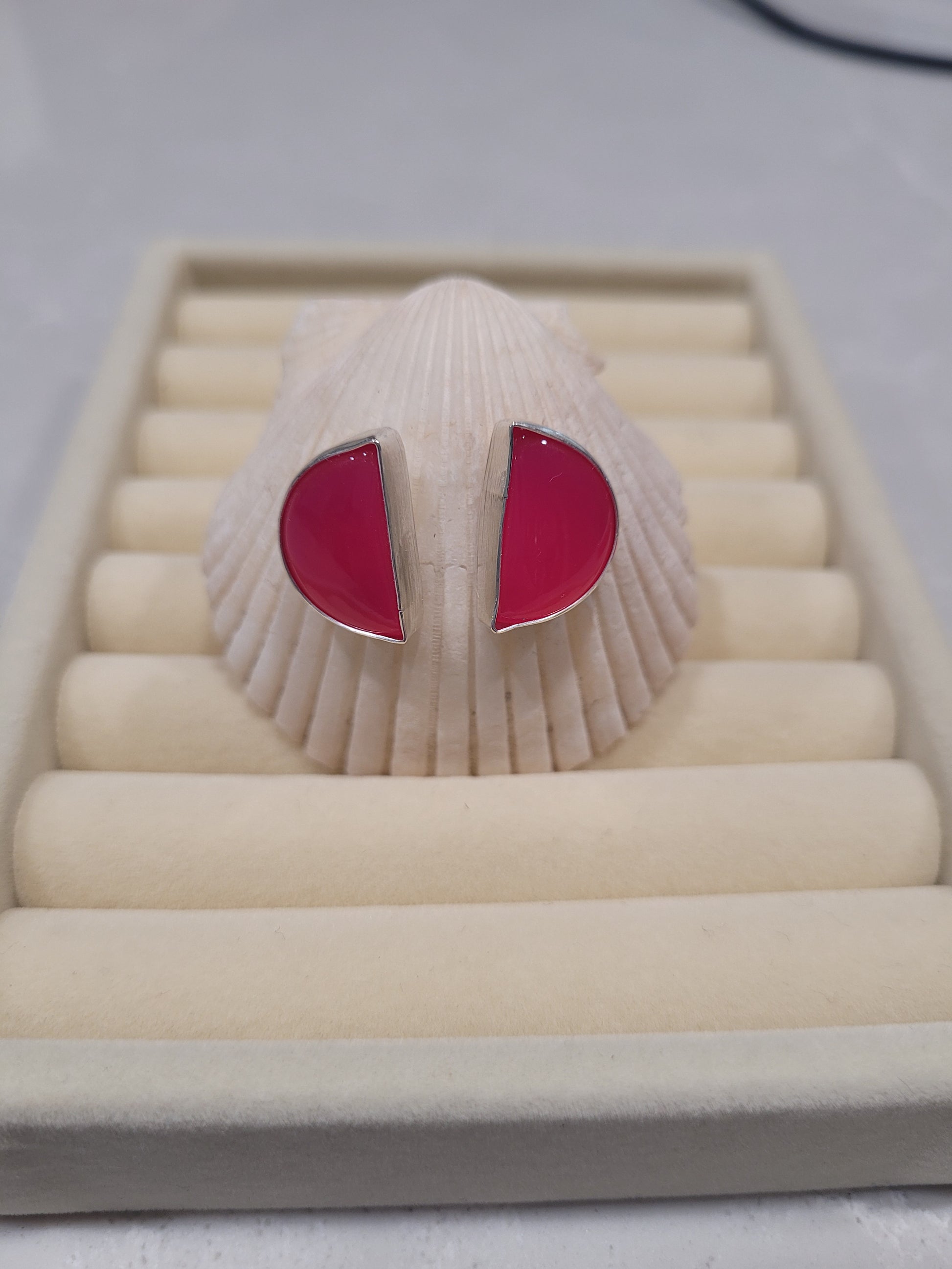 Hot pink chalcedony half moon cabachon stones set in solid sterling silver