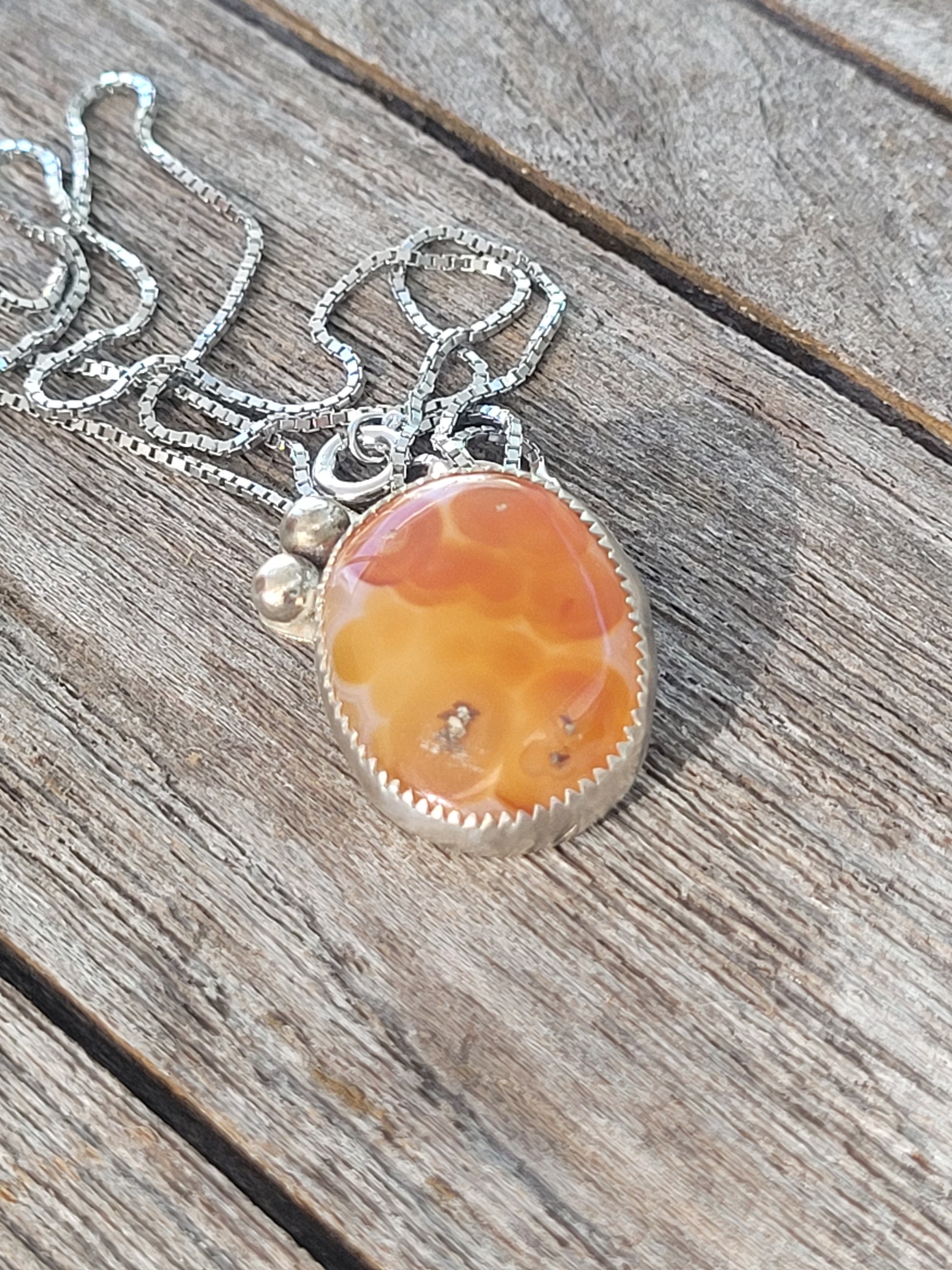 Orange/ yellow agate stone set in solid sterling silver with an 18 inch sterling silver snake chain